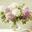 BEAUTIFUL WHITE AND PINK HORTENSIA FLOWERS IN VASE ON TABLE