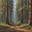 A serene forest scene featuring tall pine trees lining a dirt path. Sunlight filters through the branches illuminating the greenery and creating a pea...[+]