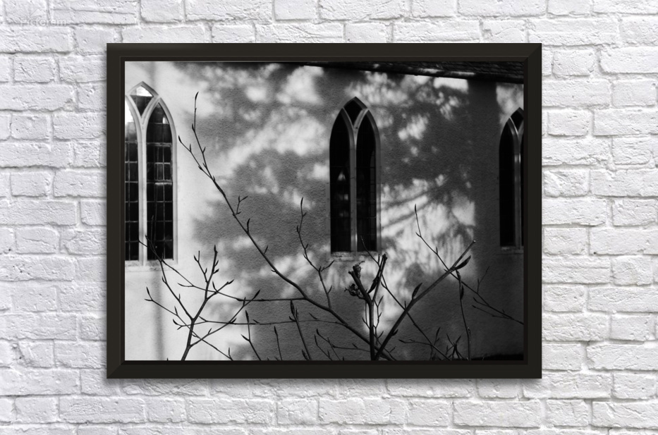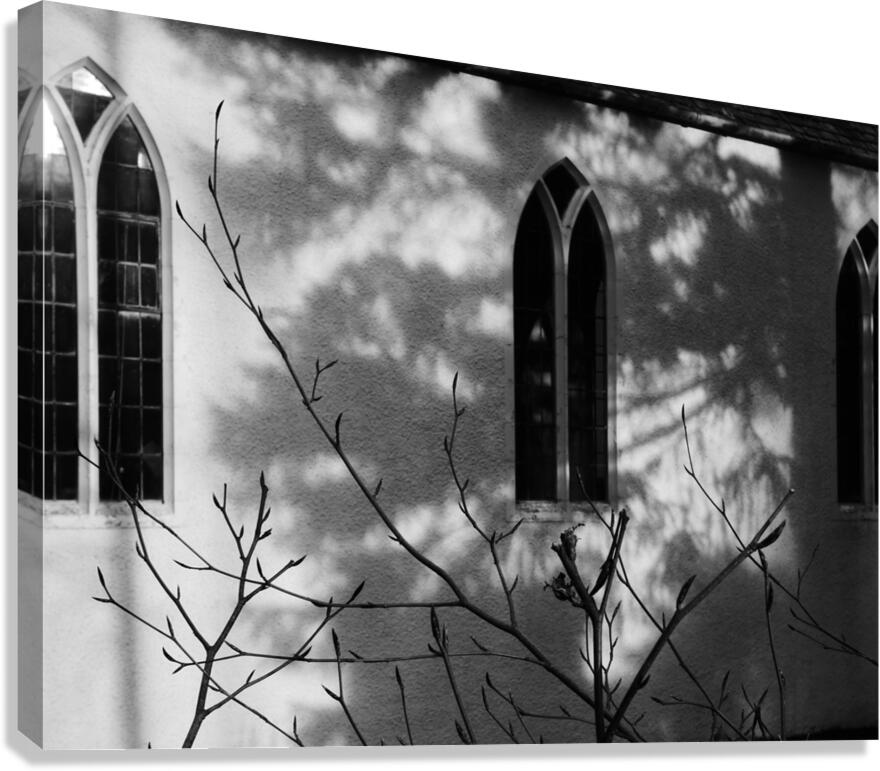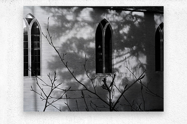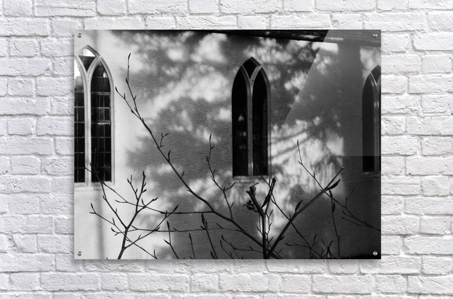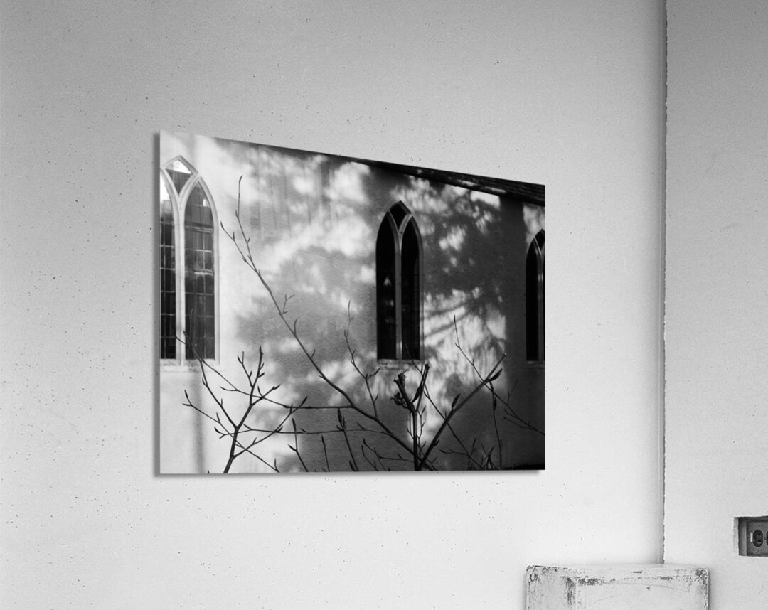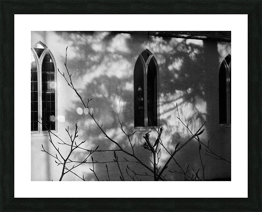 I took this photo during a lovely winter walk in the Scottish Highlands. It features sunlight casting intricate shadows of bare branches against the wall of a building with arched windows. The monochrome scene emphasizes the contrast between light and shadow, creating a serene and contemplative mood.