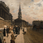 ABOUT THIS ARTWORK: LA NATIONAL GALLERY ET L’éGLISE SAINT MARTIN [LONDRES] [1878] BY GIUSEPPE DE NITTIS [1846–1884]