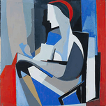 Abstract figure composed of geometric shapes and bold colors. Technique: Acrylic on canvas, influenced by Juan Gris and Fernand Leger. Artist's ...[+]