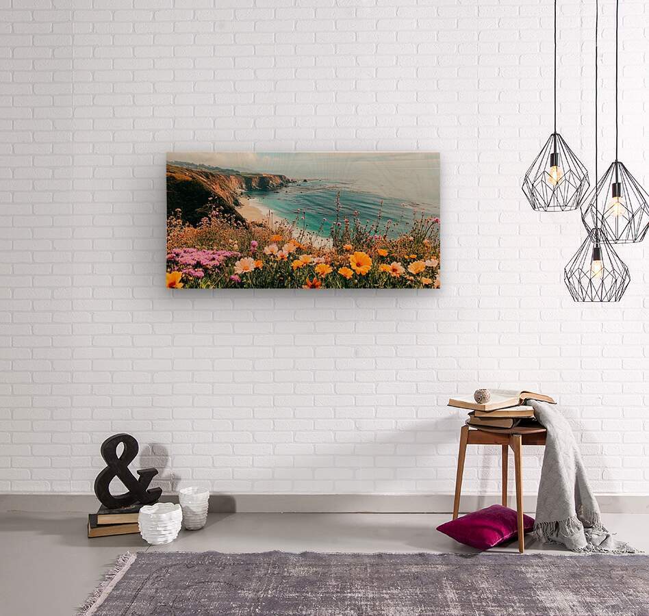 Wildflower Blooming along the Beautiful Coastline  Wood print