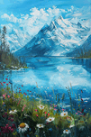 Serene alpine lake reflecting majestic mountains. Technique: Oil on canvas, influenced by Claude Monet and Albert Bierstadt Artist's Intent: To ...[+]