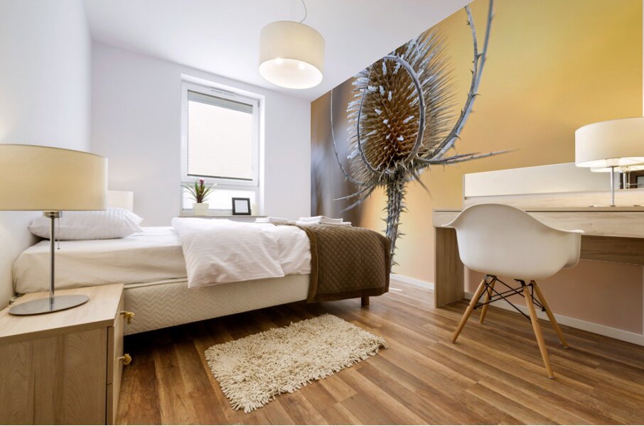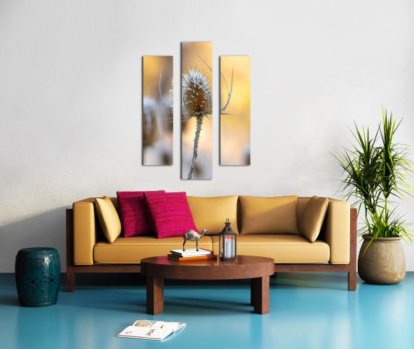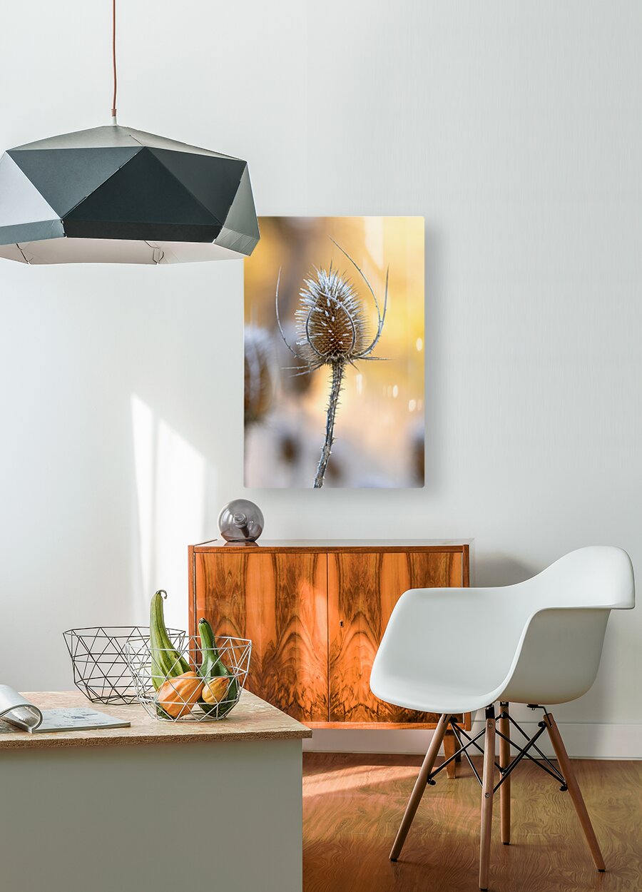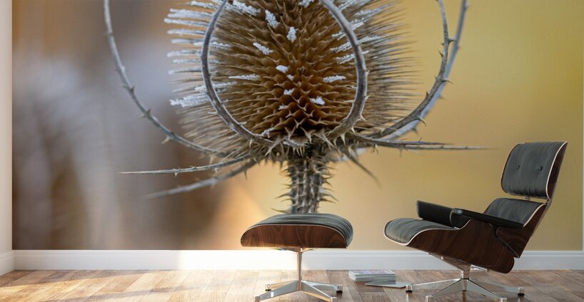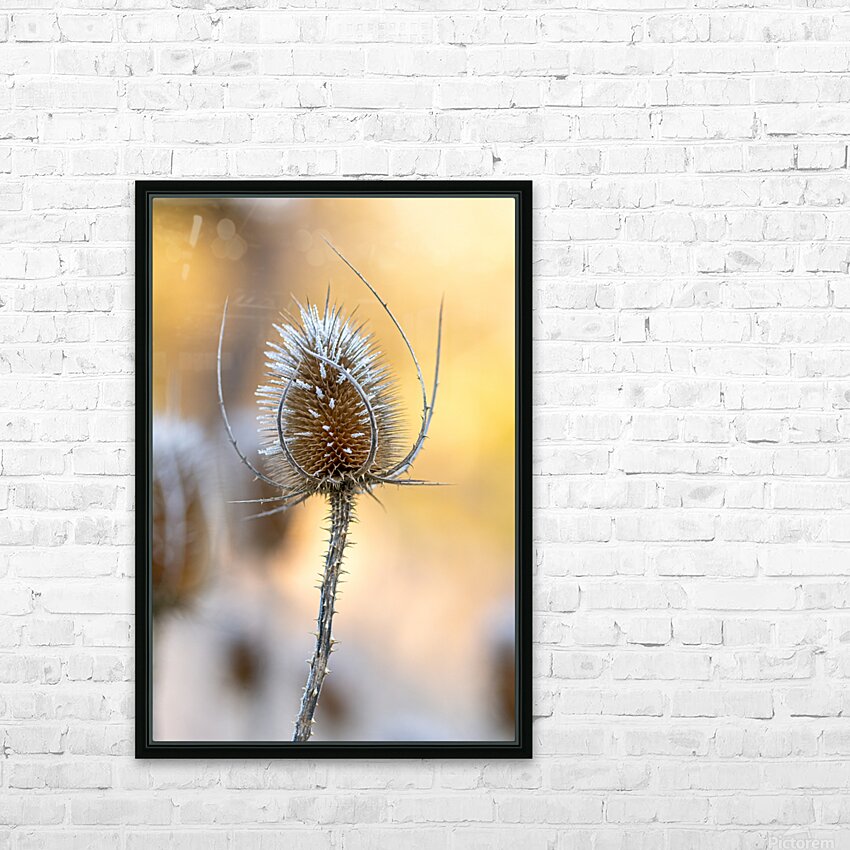 ABOUT THIS ARTWORK: CLOSEUP MACRO SHOT OF A THISTLE FLOWER COVERED BY BEAUTIFUL ICE CRYSTALS