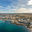 A Coruna city, aerial perspective. Old historic center of the city. Panoramic aerial view of all Region. Famous travel destination in Galicia, northwest of Spain. Promenade and beach area of the city