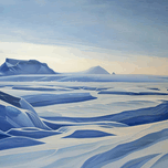 A serene arctic landscape with smooth, stylized forms and a tranquil atmosphere. Technique: Acrylic on canvas, influenced by Lawren Harris and Rockwe...[+]
