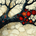 Abstract depiction of organic growth and cellular structures, resembling a living network. Technique: Acrylic pouring, influenced by Holton Rower and...[+]