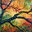 Upward view of autumnal tree branches against a colorful sky. Technique: Acrylic on canvas, influenced by Gustav Klimt and Vincent van Gogh Artist&#...[+]