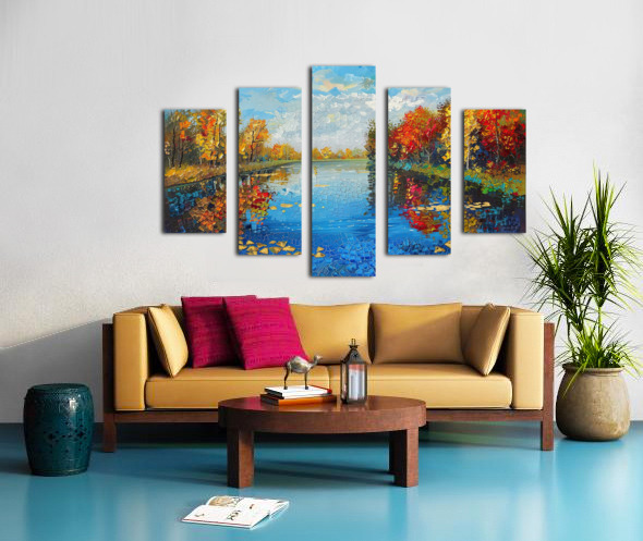 Autumnal lake scene with vibrant colors Technique: Oil on canvas, influenced by Claude Monet and Alfred Sisley Artist's Intent: Capture the beauty of autumn reflected in still water Contribution: High market appeal for landscape enthusiasts, collectors Influences: Impasto technique with palette knife, creating textured surface