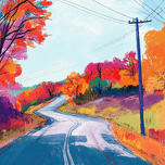 A winding road through a vibrant autumn landscape, with bold colors and textured brushstrokes. Technique: Digital painting, influenced by Vincent van Gogh and Peter Doig Artist's Intent: To evoke the feeling of a crisp autumn day, capturing the beauty and energy of the changing season. Contribution: Strong appeal to collectors interested in contemporary landscape art with an impressionistic or expressionistic style. Suitable for both residential and commercial spaces. Influences: Impasto brushstrokes create texture and movement, capturing the vibrancy of autumn foliage. Expressive color palette enhances the emotional impact.