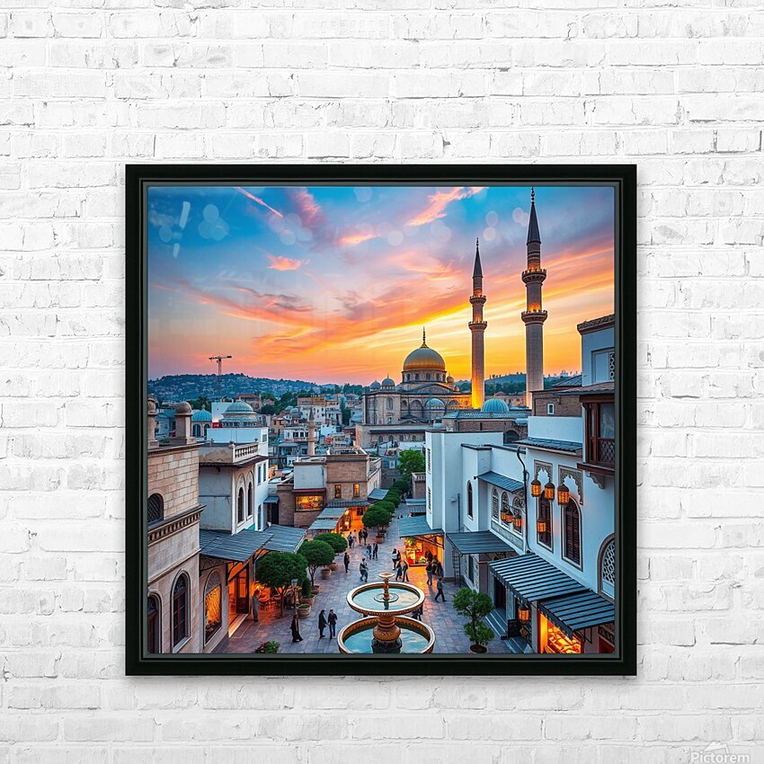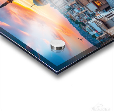 Sunset Over the City  HD Metal print with Floating Frame on Back