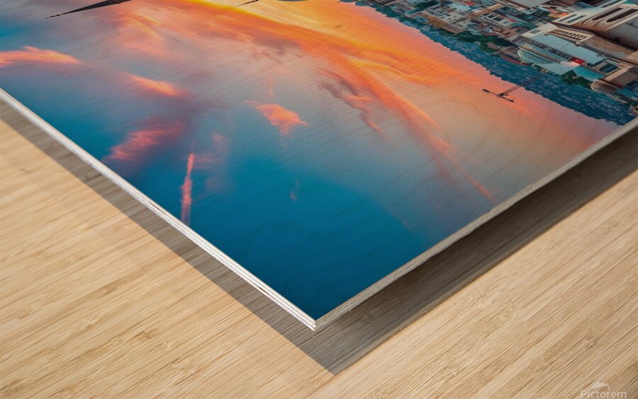 Sunset Over the City  Wood print