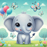 A charming and playful cartoon elephant with a friendly smile, designed in soft pastel colors. Perfect for children's room decor, nursery wall art...[+]
