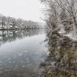 A winter snow falls over Finley River in Ozark, Missouri, United States. It's one of those moments where you are forced to slow down as a chilly s...[+]