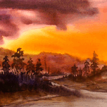 ABOUT THIS ARTWORK: CLOUDY SUNSET MOUNTAIN HIMALAYA WATERCOLOR PAINTING