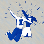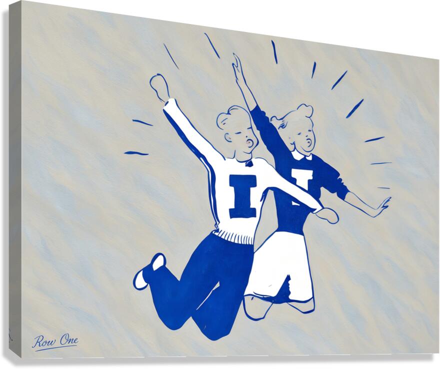 Vintage Indiana State Sycamores Cheerleaders Art | Row One | Over 17,000 Historic Art Prints | Row One's mixed media painting was created from authentic historic Indiana State cheerleader art and has been remixed for aesthetics. Derivative art © 2025 Row One Brand