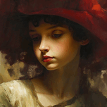 The Scarlet Reverie The Mabazza Foundation Collection This enchanting image captures a young girl in a moment of quiet reflection, her face softly illuminated by warm, diffused light. A voluminous scarlet hat, rich with movement and texture, frames her delicate features, creating a striking contrast between bold color and gentle expression. The blend of soft, impressionistic brushstrokes and finely detailed realism lends the image a dreamlike, timeless quality. Themes & Symbolism - The Red Hat – A Symbol of Youth & Awakening The oversized, flowing hat envelops the girl's curls, its deep crimson hue suggesting passion, curiosity, and an emerging sense of self. It is both playful and dramatic, hinting at a child on the cusp of adolescence, navigating the delicate transition between innocence and awareness. - Her Expression – A Moment of Introspection Her gaze, downcast and thoughtful, suggests a quiet, unspoken emotion—perhaps a lingering sadness, a daydream, or the weight of a moment she does not yet fully understand. - The Contrast of Boldness & Softness The fluid, expressive brushwork in the background and the movement within the hat create a striking contrast against the gentle precision of her features. This duality enhances the sense of a fleeting moment in time, as if she exists between childhood wonder and the depth of emotions that come with growing up. Part of The Mabazza Foundation Collection, this exquisite image is a poignant meditation on youth, memory, and the quiet thoughts that drift through the mind of a child standing at the threshold of tomorrow.