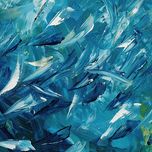 Abstract composition with dynamic brushstrokes in shades of blue, creating a sense of movement and energy. Technique: Acrylic on canvas, influenced by Joan Mitchell and Helen Frankenthaler Artist's Intent: To capture the energy and fluidity of water through dynamic brushstrokes and a vibrant blue palette. Contribution: Appeals to collectors of abstract art who appreciate expressive brushwork and vibrant color palettes. Suitable for modern and contemporary interiors. Influences: Impasto technique with visible brushstrokes and layered colors creates dynamic movement and texture.
