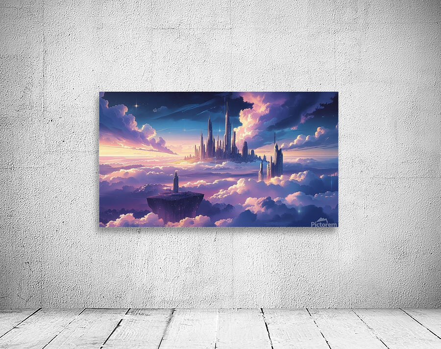 Surreal Dreamworld: A mesmerizing fusion of nature and futuristic imagination. This artwork features a floating city in the sky, surrounded by glowing clouds and a stunning gradient of deep blue, purple, and golden tones. Perfect for modern wall art or digital backgrounds, this piece captures the serene beauty of a dreamlike universe where technology meets tranquility. Add a touch of wonder and inspiration to your space with this unique AI-generated design.