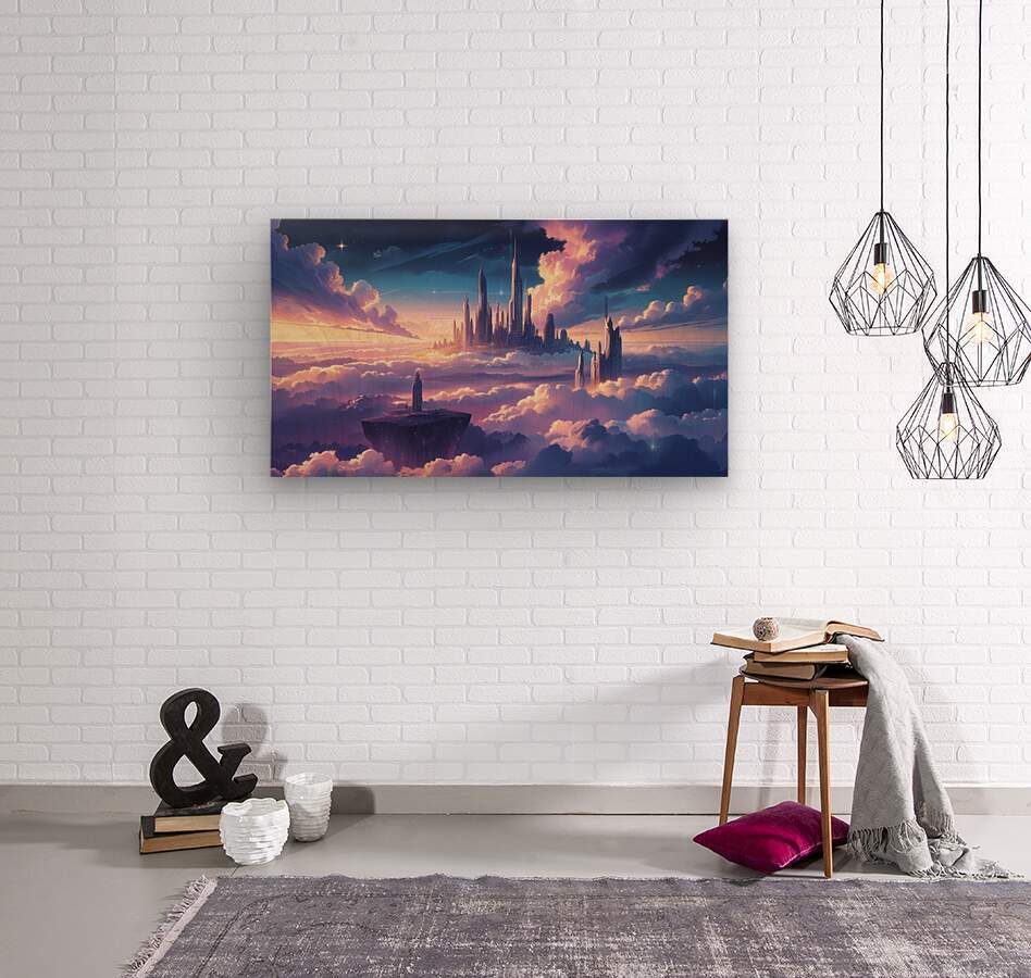 DreamScape Horizon: The Floating City of Tomorrow  Wood print