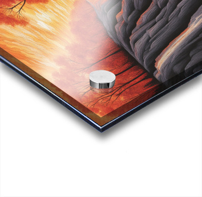 Printed to the edge - Ready to hang - provided with 4 premium polished aluminum stand off ( wall screws and mounting hardware provided )