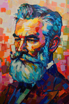 Portrait of a bearded man with a contemplative expression, rendered in vibrant colors and bold brushstrokes. Technique: Acrylic on canvas, influenced...[+]