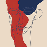 Abstract portrait formed by a single, continuous line against a backdrop of contrasting color blocks. Technique: Digital illustration, influenced by ...[+]