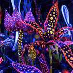 Bioluminescent flora with dotted patterns in a vibrant, otherworldly garden. Technique: Photograph, influenced by Yayoi Kusama and Dale Chihuly Artist's Intent: To evoke a sense of wonder and enchantment through the depiction of a fantastical, bioluminescent garden. Contribution: Appeals to a broad audience interested in nature, fantasy, and vibrant art. Strong potential for prints, home decor, and digital displays. Influences: Close-up photography capturing bioluminescent floral forms with vibrant, contrasting colors and intricate dotted patterns.