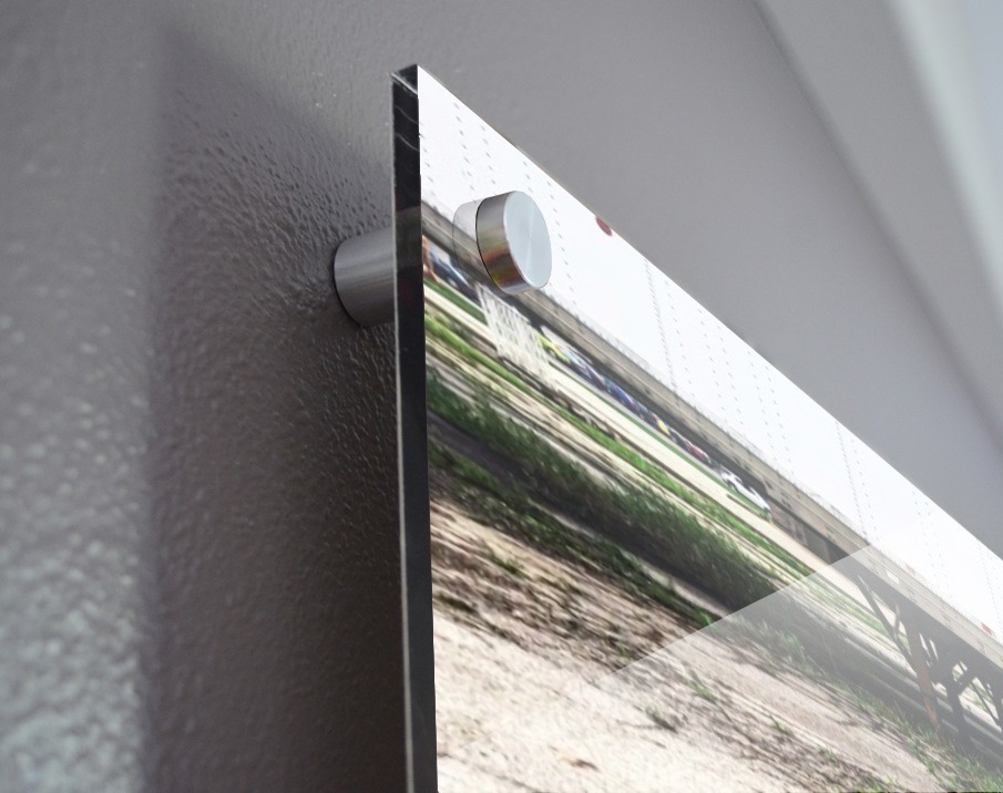 Printed to the edge - Ready to hang - provided with 4 premium polished aluminum stand off ( wall screws and mounting hardware provided )