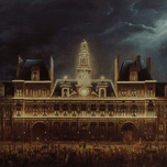 ABOUT THIS ARTWORK: ILLUMINATION DE L’HôTEL DE VILLE POUR LA FêTE DU ROI. LE 1ER MAI 1847 [1847] BY AUGUSTE ROUX [19TH CENTURY]