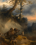 Ein von Wolfen angefallener Eber by Friedrich August Matthias Gauermann