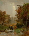 ABOUT THIS ARTWORK: CATTLE BY A STREAM [1895] BY JASPER FRANCIS CROPSEY [1823–1900]