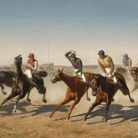 ABOUT THIS ARTWORK: RENNTAG IN DER FREUDENAU BY CARL RUDOLF HUBER [1839–1896]