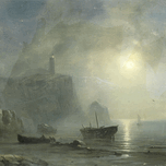 VIEW OF A ROCKY COAST BY MOONLIGHT [1830–1880] BY THéODORE GUDIN [1802–1880]