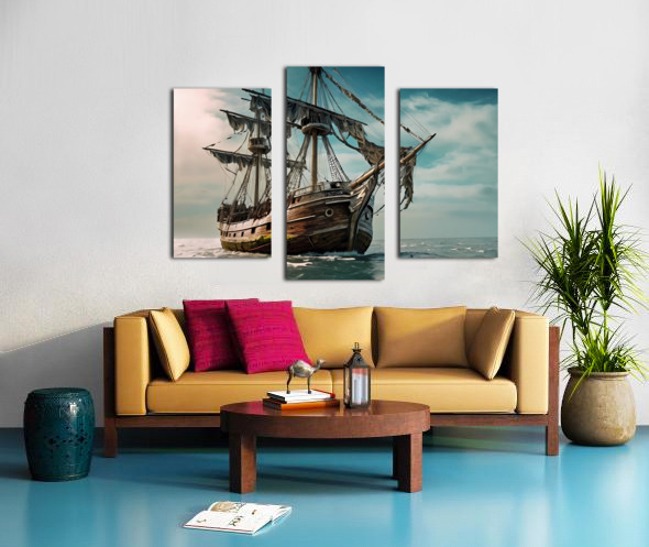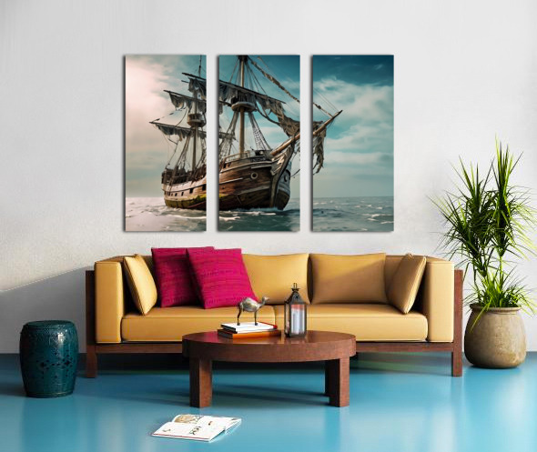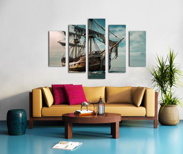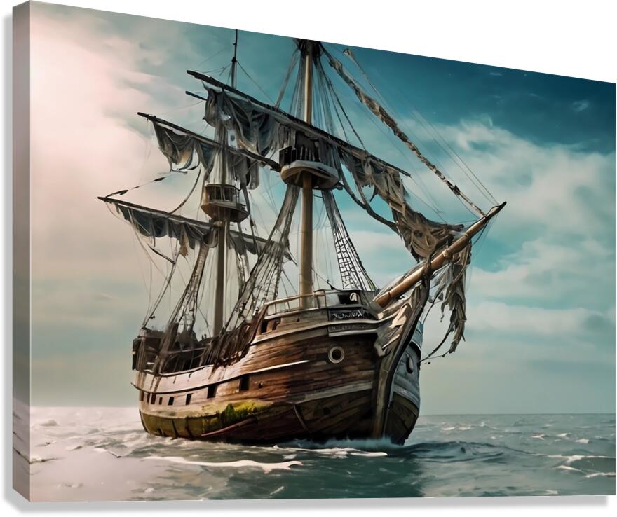 GHOSTLY GALLEON AT DAWN YUCEFGREEN  Canvas Print