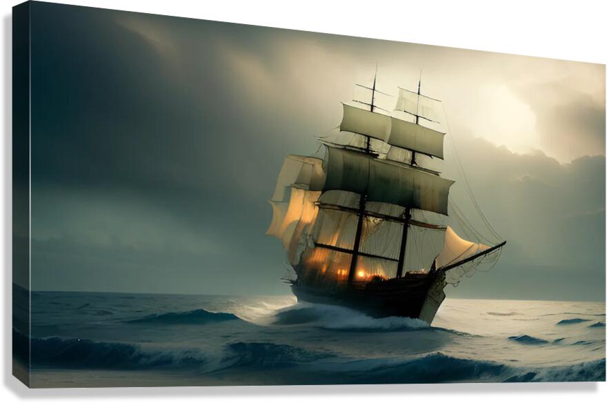 ILLUMINATED SHIP IN THE STORM YUCEFGREEN  Canvas Print