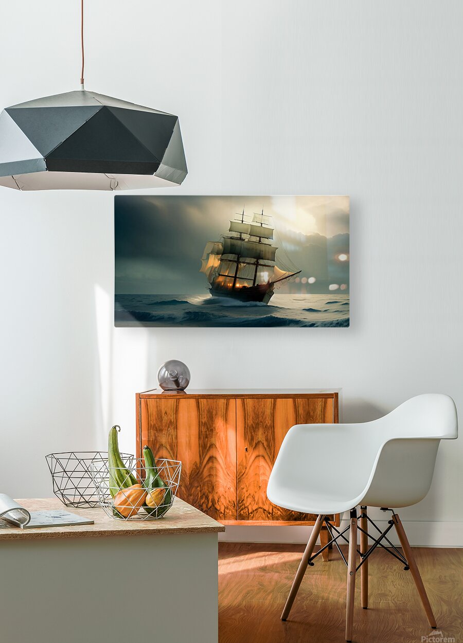 Illuminated Ship in the Storm  HD Metal print with Floating Frame on Back