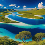 “In a magical moment as the golden sunlight touches the calm surface of the lake the warm colors of dawn are reflected on the water creating a captivating artistic painting. The towering trees stand as silent sentinels while a light mist surrounds the place giving the scene a touch of mystery and beauty. This painting is an invitation to contemplate the magic of nature and an artistic painting that inspires peace and tranquility.”