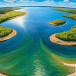“In a magical moment as the golden sunlight touches the calm surface of the lake the warm colors of dawn are reflected on the water creating a captivating artistic painting. The towering trees stand as silent sentinels while a light mist surrounds the place giving the scene a touch of mystery and beauty. This painting is an invitation to contemplate the magic of nature and an artistic painting that inspires peace and tranquility.”