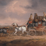 Get this artwork "Mail Coaches on the Road– the Louth–London Royal Mail progressing at Speed by Charles Cooper Henderson [1803–1877]" in a framed print.