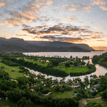 BREATHTAKING AERIAL VIEW OF SUNSET OVER HANALEI BAYS VERDANT LA