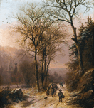 Figures on a winter road [1849] by Barend Cornelis Koekkoek [1803–1862]  Wood print