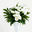 This captivating image features a stunning arrangement of white orchids elegantly displayed in a contemporary white vase. The orchids, with their delicate petals and striking centers, are surrounded by vibrant green leaves, creating a lush and sophisticated look. Ideal for enhancing home decor, special events, or as a thoughtful gift, this floral display radiates elegance and tranquility.