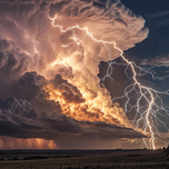 This artwork captivates both the eye and the mind, as it captures a moment of celestial madness, as glowing clouds intertwine like waves of blazing fire, while the sky flashes with electric whips that extend like the arms of fate. The striking contrast between darkness and light, between stillness and storm, makes this painting a captivating masterpiece. Every detail here speaks of life: the congested clouds seem to pulsate with energy, and the calm ground below adds a dramatic dimension as if waiting for the storm to come and reshape it. This is not just a landscape painting, but a painted poem about the majesty of nature and its invincible power.