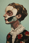 Profile portrait with exposed skull section, revealing underlying anatomy and musculature. Technique: Oil on canvas, influenced by Frida Kahlo and Je...[+]