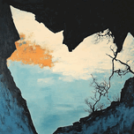 Cave framing a sliver of orange and blue sky with silhouetted branches. Technique: Acrylic on canvas, influenced by Caspar David Friedrich and J. M. ...[+]