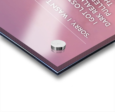 Printed to the edge - Ready to hang - provided with 4 premium polished aluminum stand off ( wall screws and mounting hardware provided )