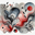 MODERN ABSTRACT PAINTING WITH RED BLACK AND GRAY FLUID SHAPES