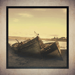 Ce cadre original capture un bateau échoué sur une plage rocailleuse au crépuscule, avec un ciel aux teintes chaudes de jaune doré et d'orange doux, contrastant avec les verts sombres et bruns rouillés du navire usé et les gris profonds du rivage. Ces couleurs nostalgiques et sépia évoquent une atmosphère mélancolique et intemporelle, invitant à la rêverie et à l'évasion. Ce cadre insufflera une ambiance d'aventure oubliée et de sérénité contemplative à votre intérieur, dégageant une élégance rustique et une inspiration poétique pour un espace évocateur et harmonieux.