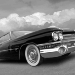 ABOUT THIS ARTWORK: 1959 CADILLAC SEDAN DE VILLE IN BLACK AND WHITE